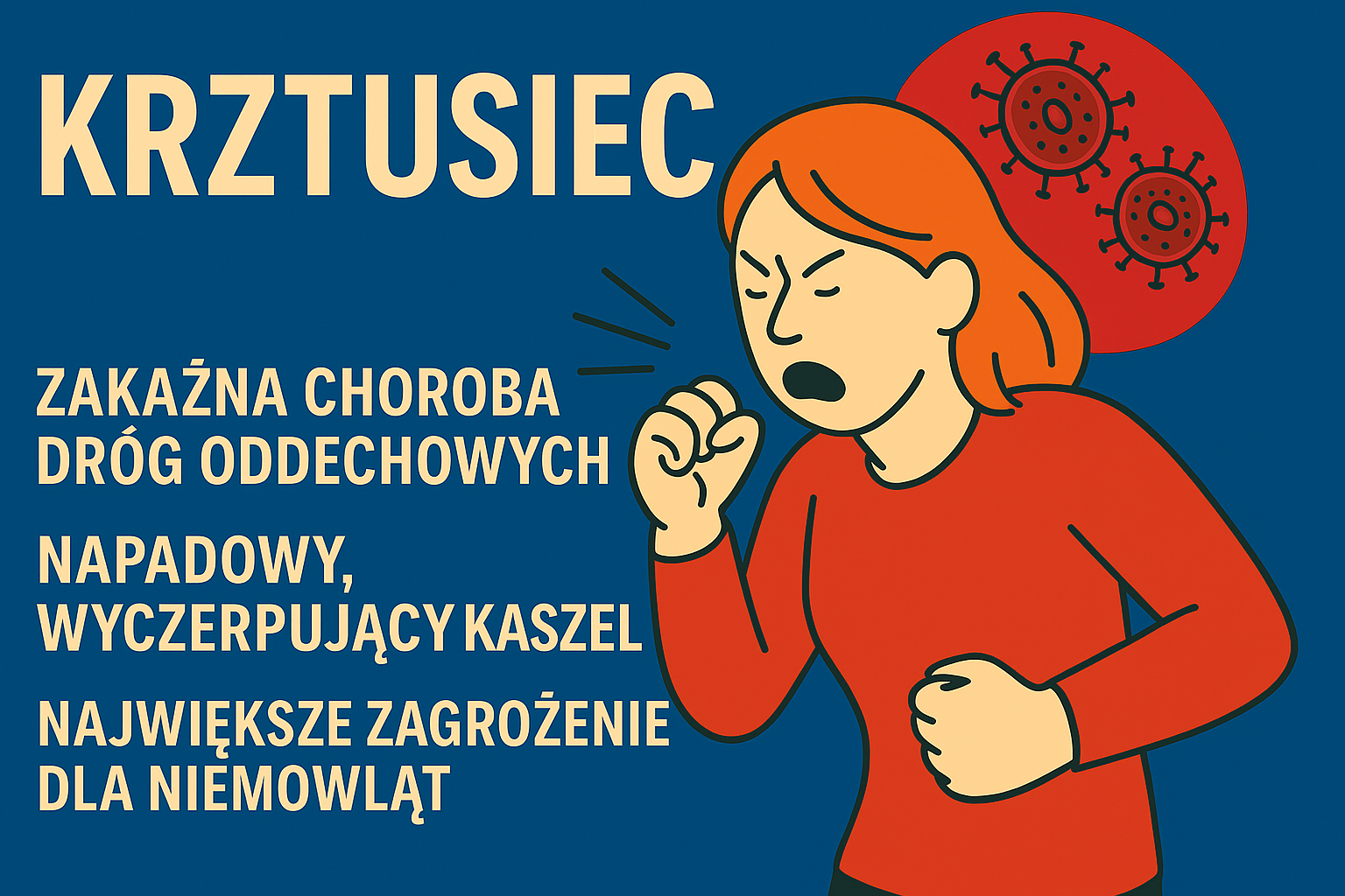 Krztusiec to zakaźna choroba dróg oddechowych, którą wywołuje bakteria Bordetella pertussis. Choć jej początek może przypominać przeziębienie – z katarem, bólem gardła i kaszlem – w kolejnych fazach rozwija się charakterystyczny, napadowy kaszel, który może trwać tygodniami. U dzieci prowadzi on często do wymiotów, bezdechów i niedotlenienia mózgu, co w skrajnych przypadkach może zakończyć się trwałymi uszkodzeniami neurologicznymi.