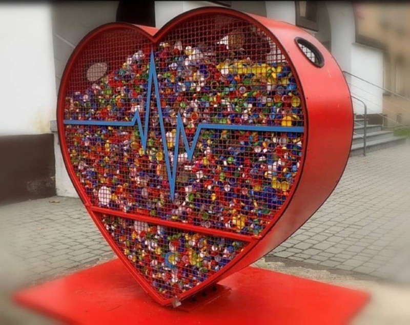Pojemnik w kształcie serca przeznaczony jest do zbierania plastikowych nakrętek. Taki pojemnik jest bardzo przydatny, gdyż spełnia szereg ważnych funkcji. Po pierwsze, jest doskonałą formą realizacji idei segregacji, ponadto wspiera idee solidarności z osobami potrzebującymi pomocy i wsparcia.