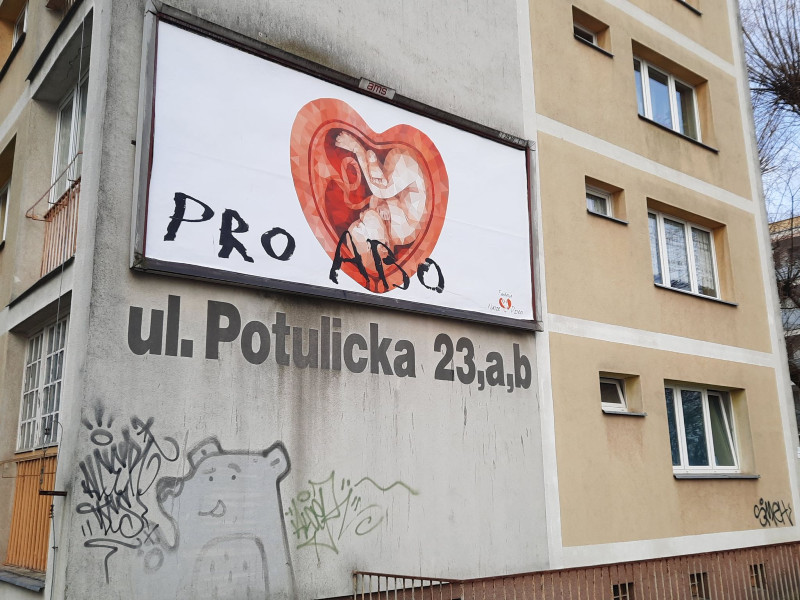 Tu natomiast widzimy billboard, który wisi na osiedlu Nowe Miasto. Plakat opatrzono wymownym tekstem „Pro Abo”.