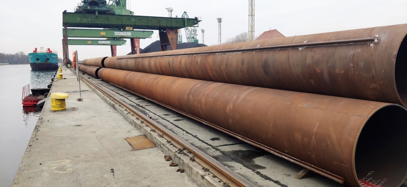 W marcu na Nabrzeże Chorzowskie dostarczono 93 sztuki gigantycznych stalowych pali rurowych, które posłużą do zabezpieczenia w pierwszej kolejności przebudowywanego nabrzeża Chorzowskiego. W dalszej kolejności będą stanowiły zasadniczy element konstrukcyjny palościanki nabrzeży. Pierwsze stalowe pale o długości 24 metrów i przekroju ø 1016mm planowo miały zostać osadzone w dnie na Nabrzeżu Chorzowskim w tym samym miesiącu. Jednak saperzy-nurkowie w trakcie prac podwodnych rozpoznali w tym miejscu amerykańską bombę lotniczą o masie powyżej 250 kg.