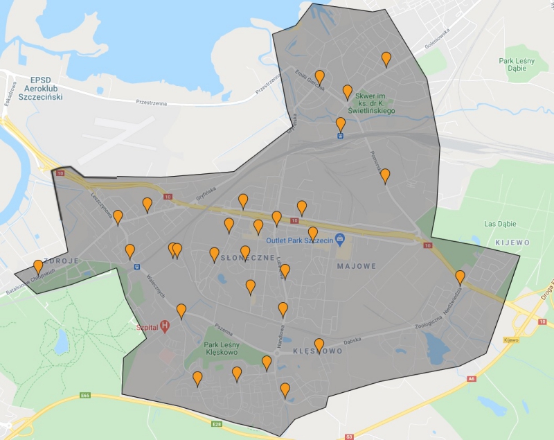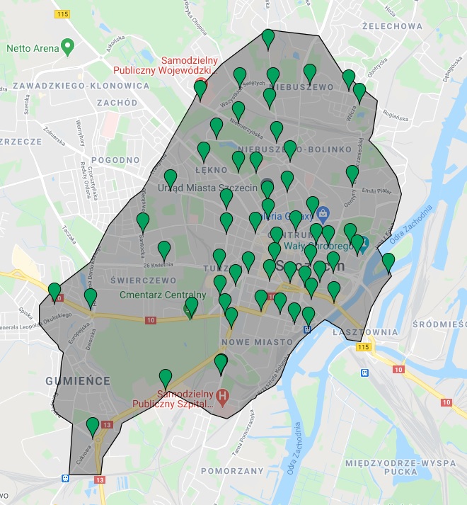 Obszar funkcjonowania BikeS operator będzie mógł dowolnie ukształtować. Jego ostateczny kształt zostanie określony po konsultacjach ze środowiskami rowerowymi i użytkownikami BikeS. Prezentowane mapki mają charakter poglądowy.
