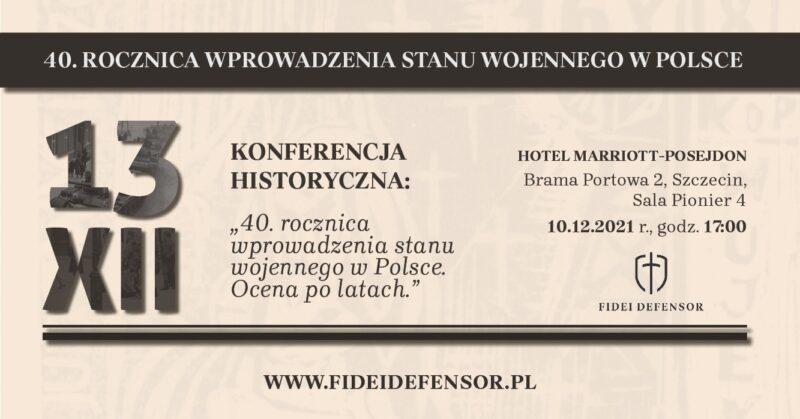 13 grudnia przypada okrągła 40. rocznica wprowadzenia w Polsce stanu wojennego. Ten trudny czas nadal wzbudza wiele emocji. Z tej okazji Ośrodek Monitorowania Chrystianofobii Fidei Defensor organizuje konferencję historyczną pt. „40. rocznica wprowadzenia stanu wojennego w Polsce. Ocena po latach.”