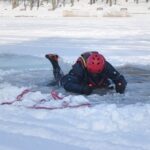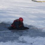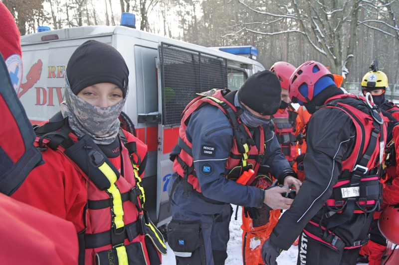 Najpierw policyjny pozorant, ubrany w wypornościowy skafander, „wpadł” do przerębla. Pokazał zebranym na brzegu, w jaki sposób można spróbować wydostać się samemu. Jak to zrobić? Nie należy wykonywać gwałtownych ruchów. Próbujemy położyć się na lodzie i wyczołgać z pułapki. Cały czas się czołgając podążamy następnie w kierunku brzegu. Jak podkreślali ratownicy, należy wykonać ze dwie próby wydostania się samemu. Jeśli się nie powiodą, powinniśmy chwycić się lodu i czekać na ratunek. Dalsze próby mogą bowiem kosztować nas zbyt dużo sił.