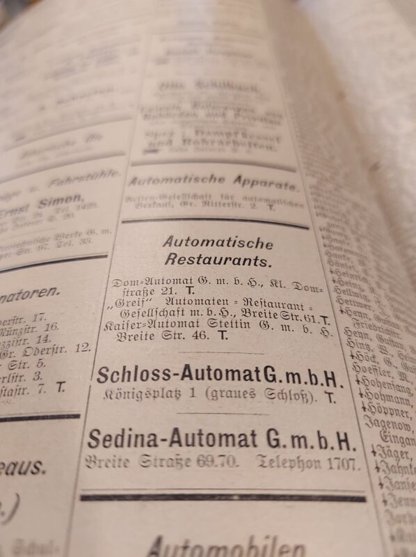 Fast-food nie jest domeną tylko XXI i XX wieku. Na przełomie XIX i XX wieku w Szczecinie istniało kilka miejsc z „szybkim jedzeniem”. Były w pełni zautomatyzowane.