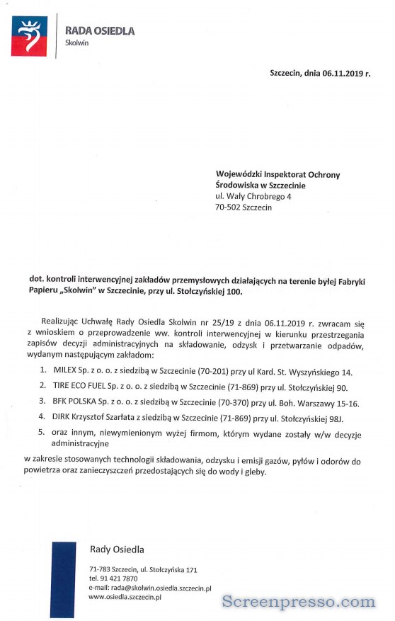Rada Osiedla wnioskowała o kontrolę tych terenów i firm.
