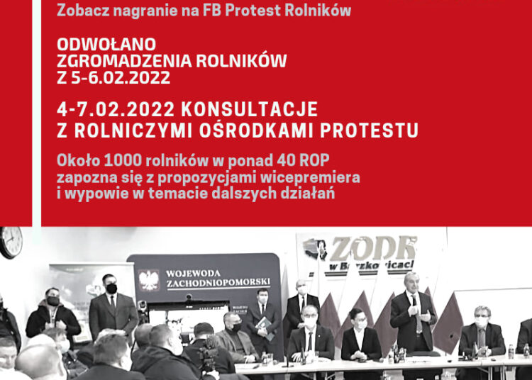 Jak czytamy w komunikacie doceniając to, że wicepremier Kowalczyk przyjechał na rozmowy, które jeszcze będą się toczyć, rolnicy odwołali zaplanowany wcześniej protest na drogach (zgromadzenie rolników). W tym czasie od 4 do 7.02.2022 rolnicy zaangażowani w protest, czyli ponad 40 rolniczych ośrodków protestu, zapoznają się z propozycjami wicepremiera i ustaleniami KPRWZ, a następnie wypowiedzą się w temacie dalszych działań.