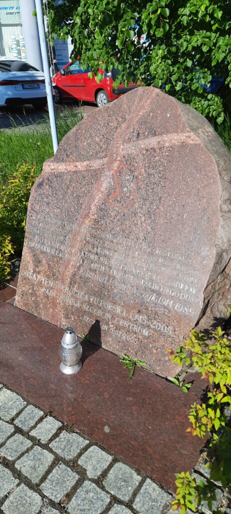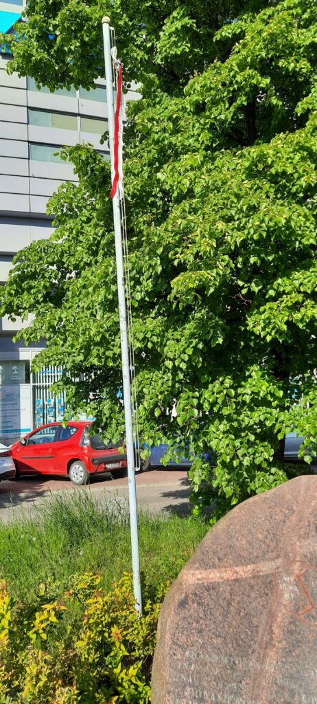 Choć symbole i słowa wyryte na kamieniu są piękne, to niestety nie sposób ich przeczytać. Kontur Polski z zaznaczonym znakiem Rodła oraz napisy, które wyryte zostały na wypolerowanej płaszczyźnie kamienia, są zabrudzone i nieczytelne. Umieszczony obok pamiątkowego głazu maszt nie posiada flagi, a jedynie zniszczoną, biało-czerwoną, ubogą wstęgę…